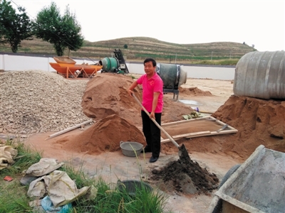 今年韩塬村加强基础设施建设,韩飞和村民一有时间就到工地帮忙。记者 朱立杨 摄